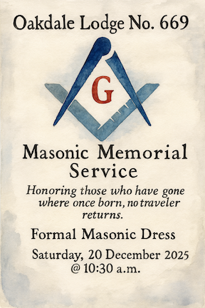 Thank you for inquiring about becoming a member of Oakdale No. 669! You have made the first step in becoming a part of the world's oldest and largest fraternity. Please complete the form below and a representative of Oakdale 669 will contact you and help answer any questions you may have.